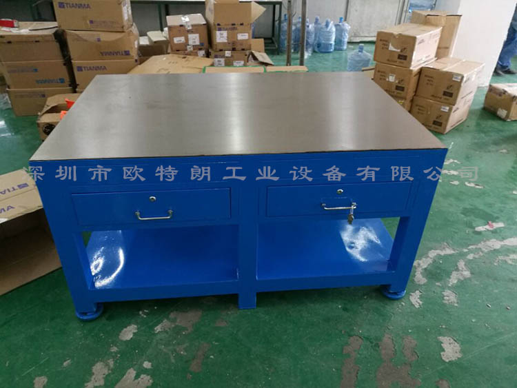 模具工作臺(tái)桌面主要由A3或45#鋼板制作,經(jīng)大水磨處理,桌面平整光滑美觀!桌面鋼板厚度主要有10mm、15mm、20mm、30mm可選,按客戶的承重要求來(lái)選擇!